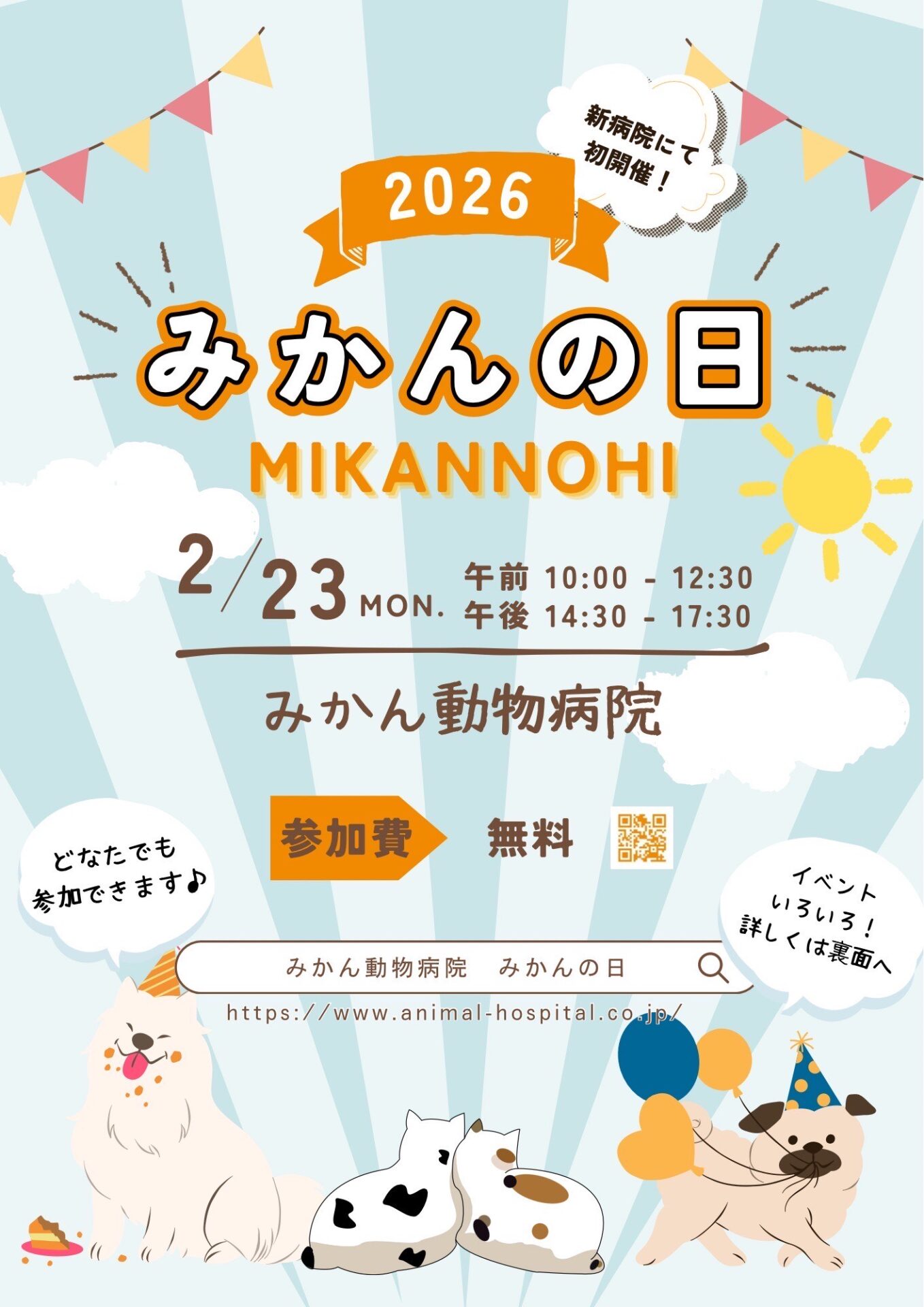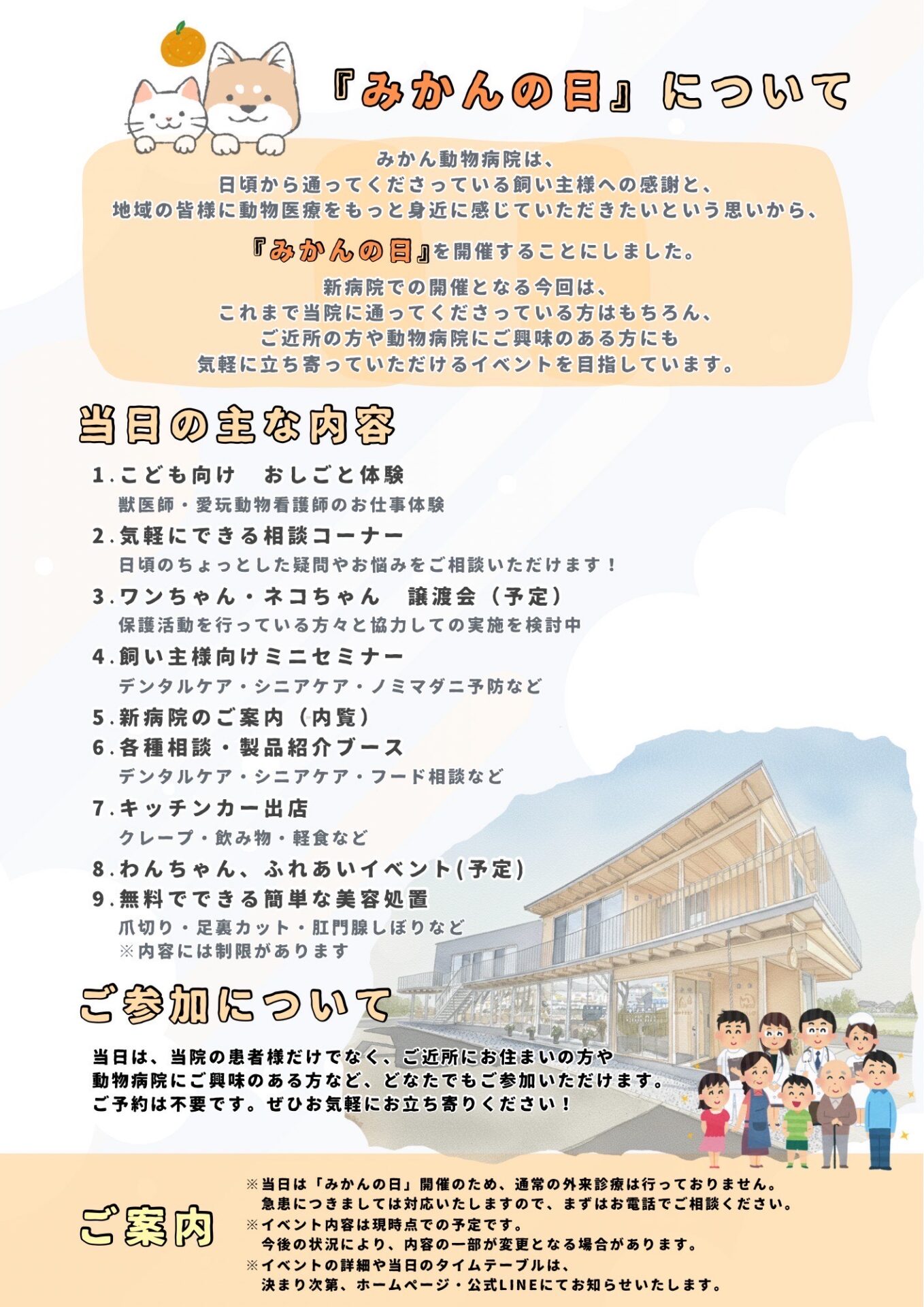 詳細が決まり次第ホームページ・みかん動物病院公式ラインにて配信!