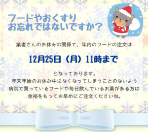 年内のフード・お薬の最終受付のおしらせ